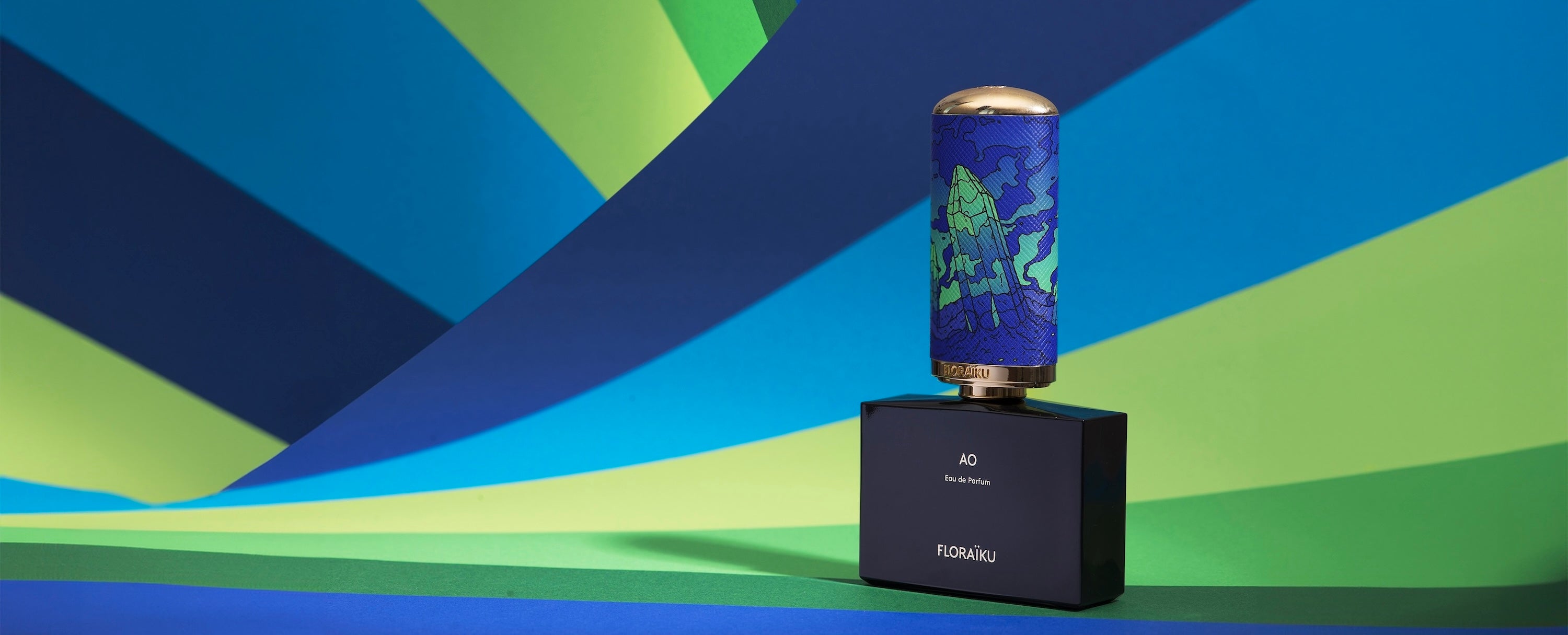 AO signifie au Japon une couleur entre le bleu et le vert, une teinte évolutive. Exactement comme les pierres précieuses peuvent le faire, selon la lumière et la pureté minérale. Ici, elles évoluent facettées comme un parfum, révélant une gamme de nuances subtiles.