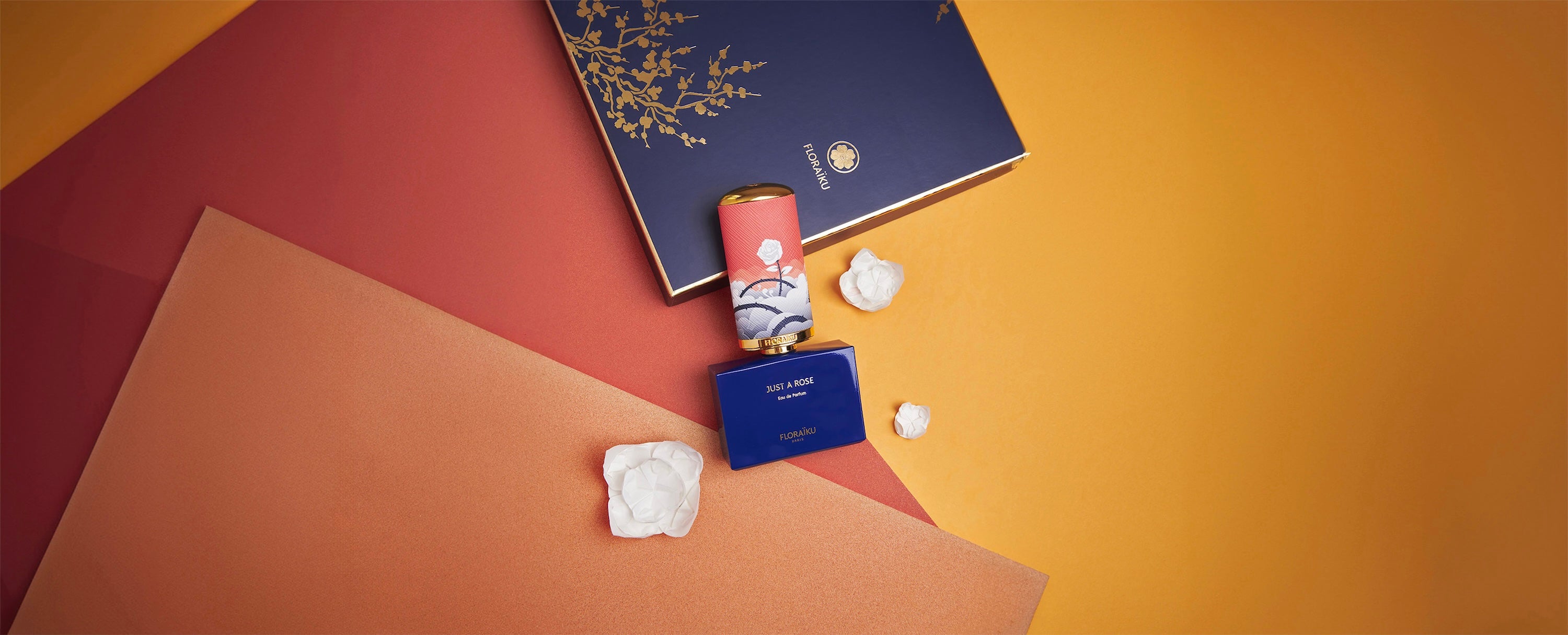 A rose, the perfumer's muse, rises. Simply. Obviously. One is enough to express its intensity. Its bloom is fresh and its scent has the power to make the sky red like a rose. Like a dawn. Like an awakening. The thorns protect it, allowing it to reach the light.
